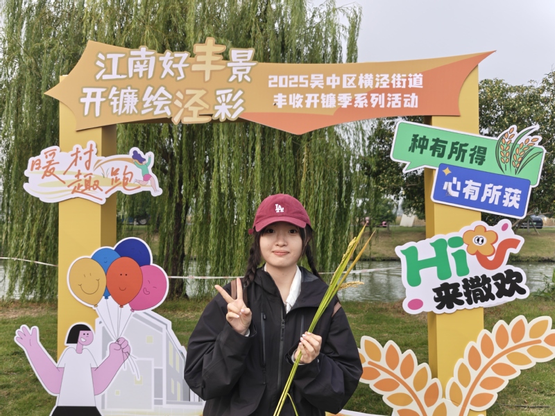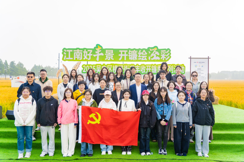 金秋送爽,稻浪飘香。11月1日,“2025吴中区横泾街道丰收开镰季系列活动”在美丽的太湖之畔——林渡暖村正式拉开帷幕,学院党委组织师生赴吴中区横泾街道林渡暖村联合举办丰收开镰季联合党日活动。学院党委书记孙磊,党委副书记、副院长李恩秀,政治学系教工党支部书记李慧凤、支部委员田晨阳,院学工办主任、本科生第一党支部书记董筱文等教师代表,以及本科生、研究生支部党员及积极分子,奔赴横泾街道林渡暖村,共同参与这场融合传统农事、党建共建与青春实践的丰收盛典。