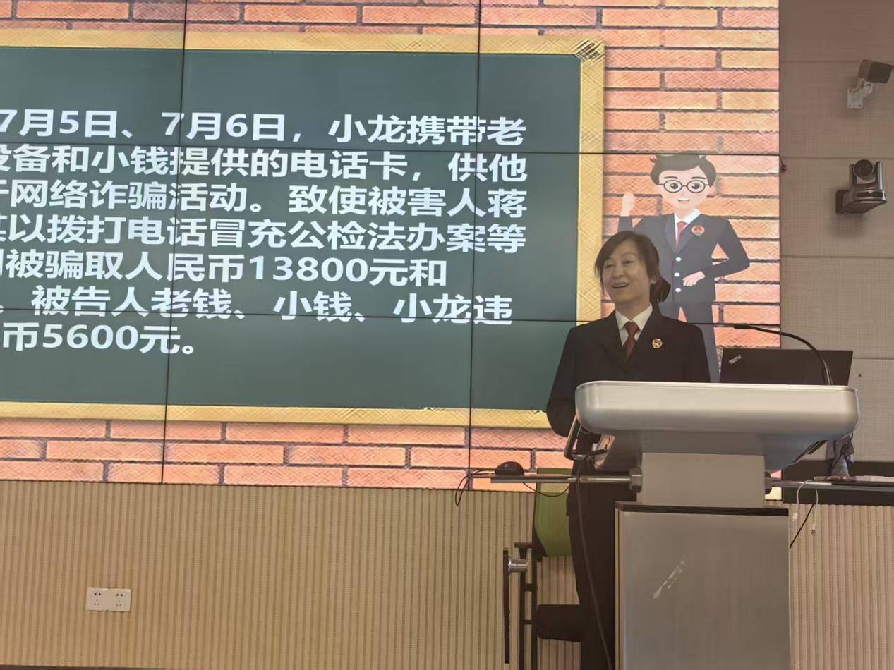 为有效应对电信网络诈骗,进一步增强大学生的安全防范意识和识诈、反诈、拒诈能力,筑牢校园反诈防线,裸聊直播 于11月12日成功举办“青春无诈,法治同行”大学生反诈防骗与自我保护指南专题讲座。本次讲座特邀太仓市人民检察院刘娜娜检察官担任主讲,为同学们带来了一堂兼具理论高度、实践深度和人文温度的法治安全教育课。本次活动由学院学工办主任董筱文老师主持。